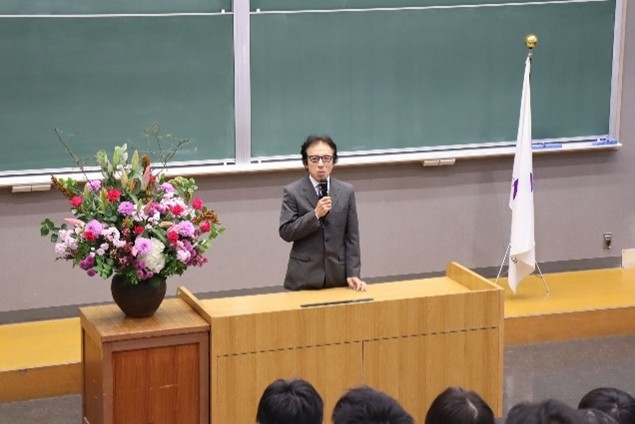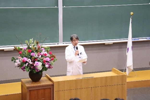 - 挨拶する小泉医学部長