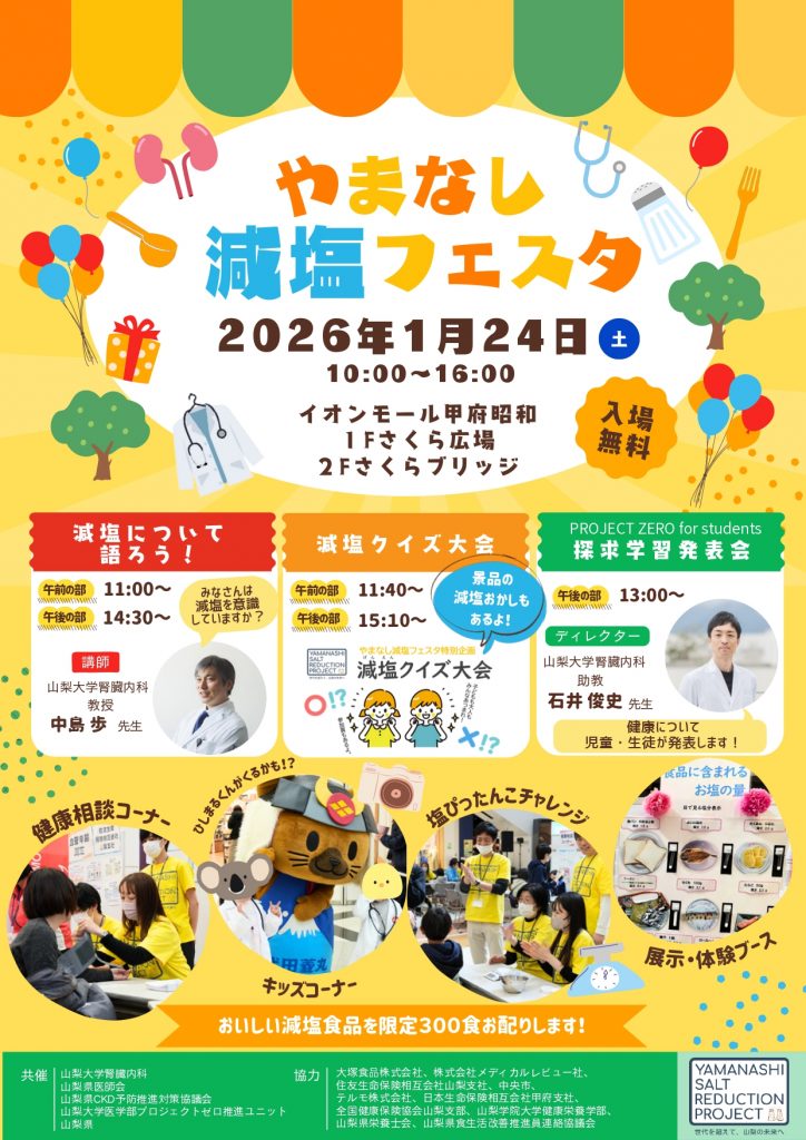 年度より行っております「やまなし減塩フェスタ」を今年度も開催する運びとなりましたので、下記のとおりご案内申し上げます。