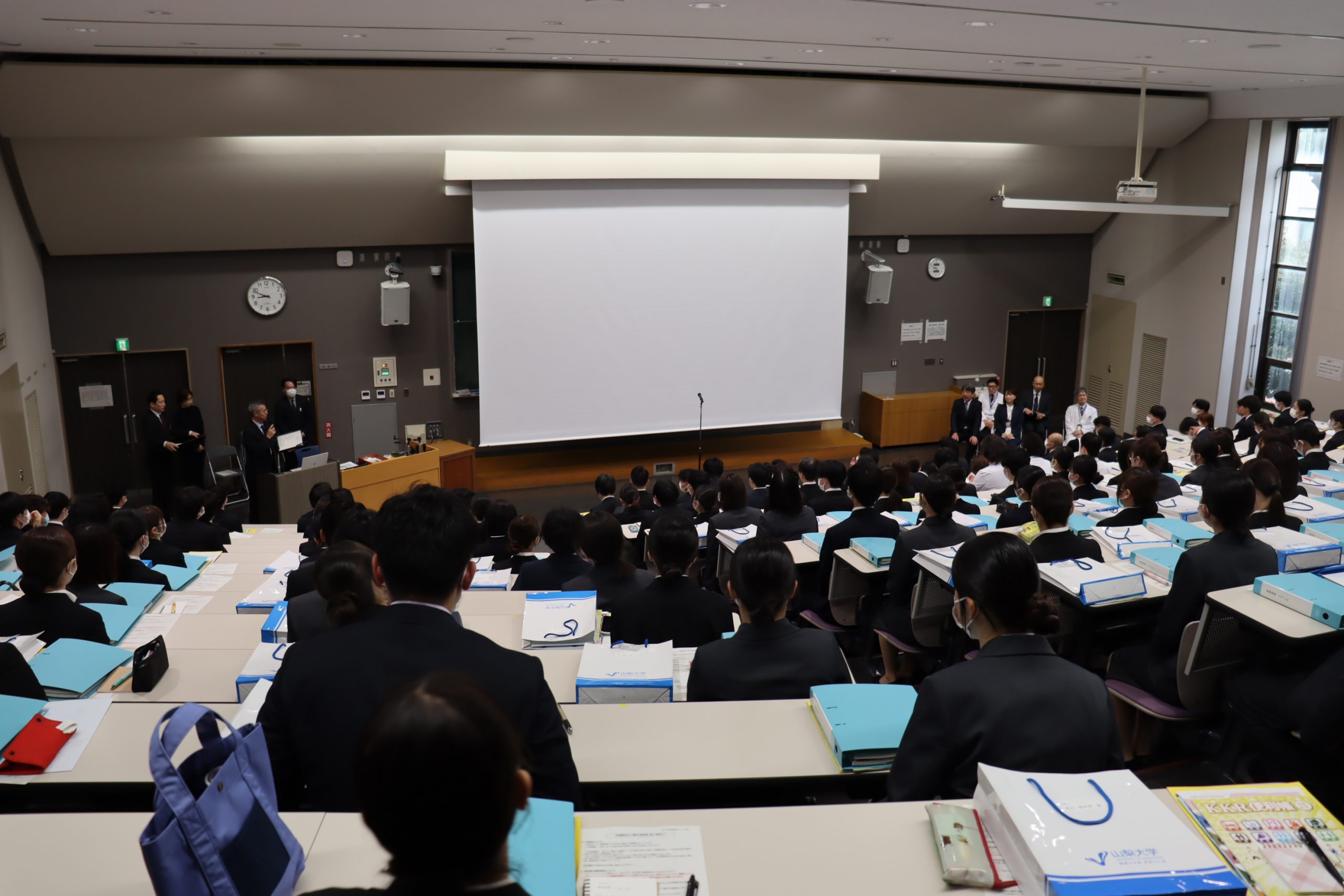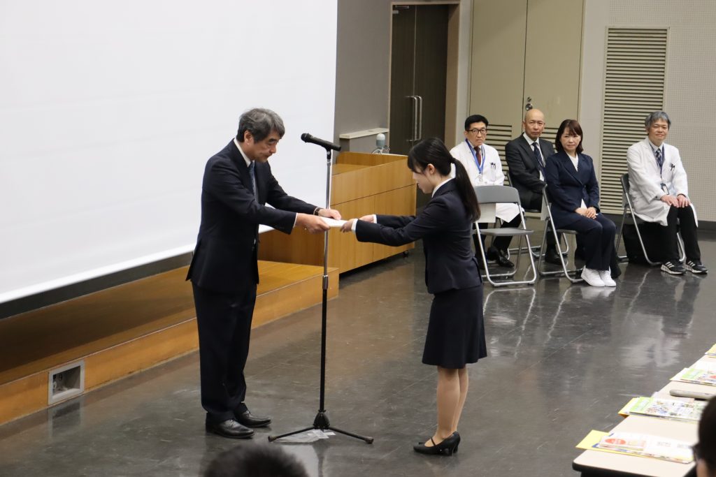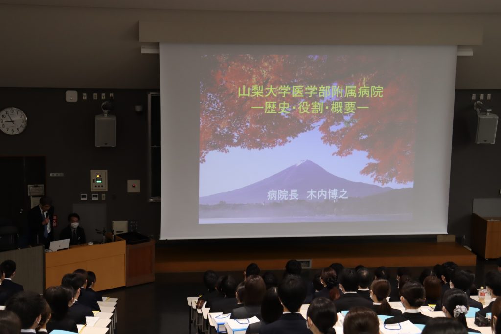 令和8年4月1日、医学部キャンパス臨床大講堂にて、令和8年度山梨大学医学部附属病院等辞令交付式及び新採用職員研修を実施しました。