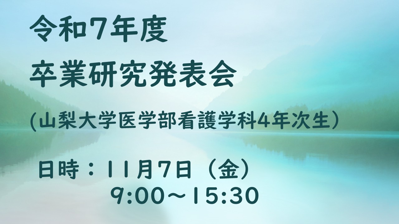 令和3年度 山梨大学医学部看護学科精神看護学領域の卒業研究発表会を行いました。 学生7名が、約1年間取り組んだ研究論文をまとめ、研究成果を発表しました。 研究にご協力いただいた皆様、発表会にご…