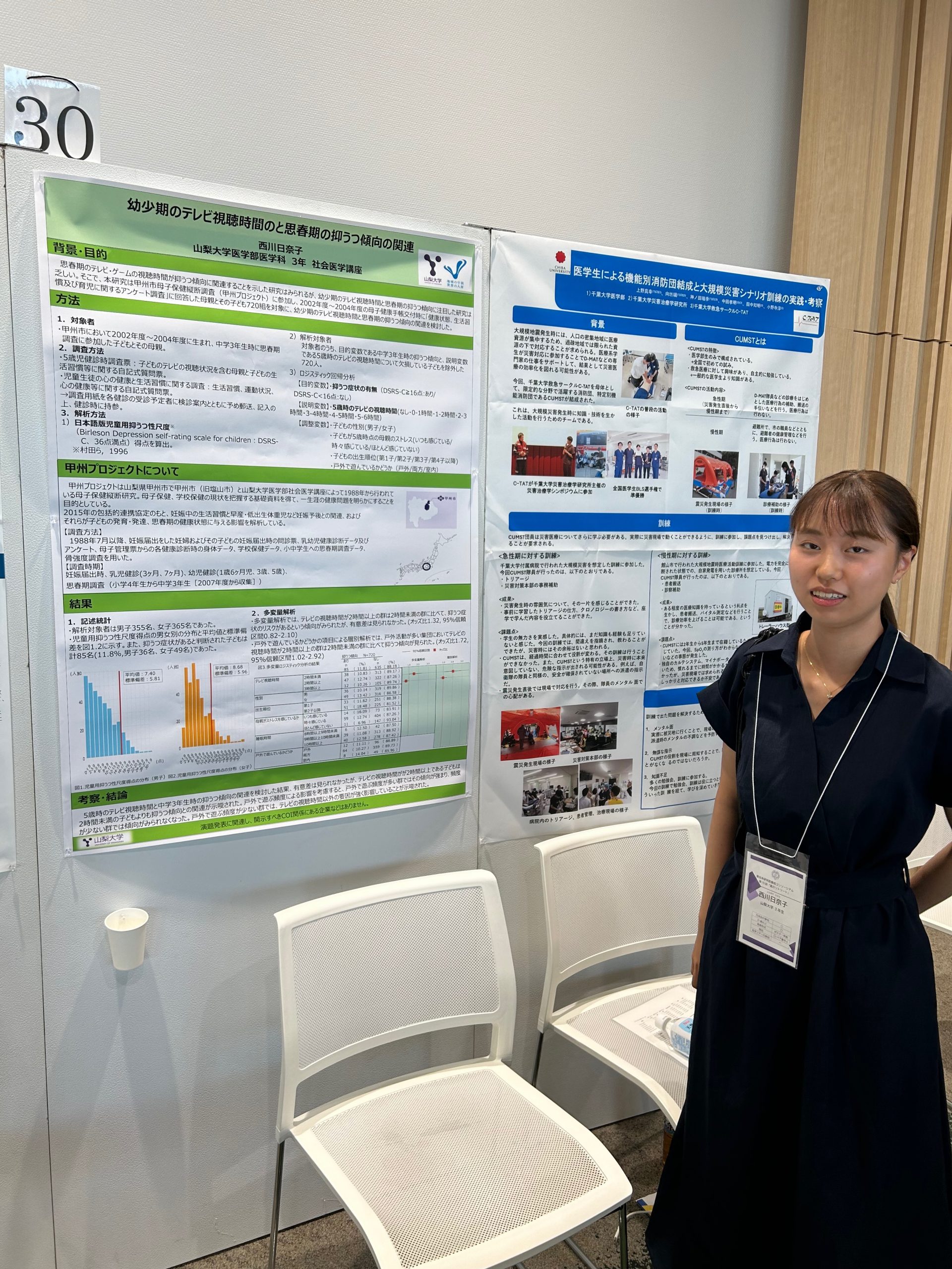 また、他の学生の発表を聞き、学生ながらに活躍されている様子に刺激を受けた2日間となりました。発表後には、他大学の学生とそれぞれの研究分野、学校生活について話す機会もあり、大変有意義な時間を過ごすことができました。