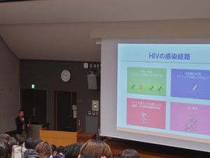 HIVとエイズの違い、よくある誤解、治療について、予防について、HIV感染者の生活についてなど色々な視点で講義をしてくださいました。